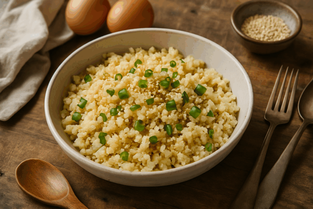 - Añadir la coliflor rallada y saltear 4–5 minutos a fuego medio.