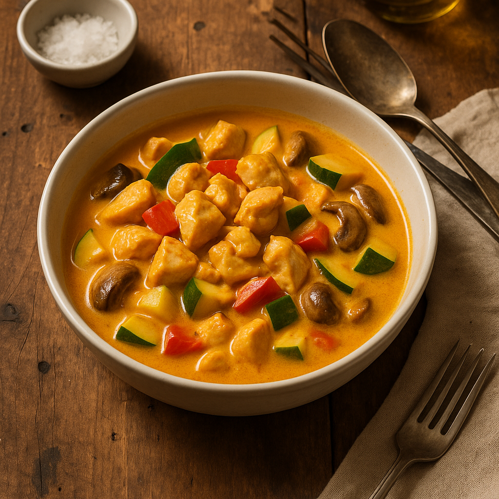 - 1–2 cucharaditas de pasta de curry rojo o verde (sin azúcares)